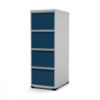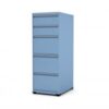 Arquivo de Aço com 5 gavetas e chave para fichas e pastas, modelo curto com patins confeccionado em chapa leve 26 com corpo cinza e a frente das gavetas coloridas, medindo 1362x470x570 mm, pintura epóxi com tratamento anti-ferruginoso na cor a escolher.