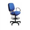 Cadeira secretária caixa, assento e encosto em espuma injetada revestida no tecido ou couro ecológico, base giratória com regulagem de altura, aro circular para apoio de pés e sapata fixas.